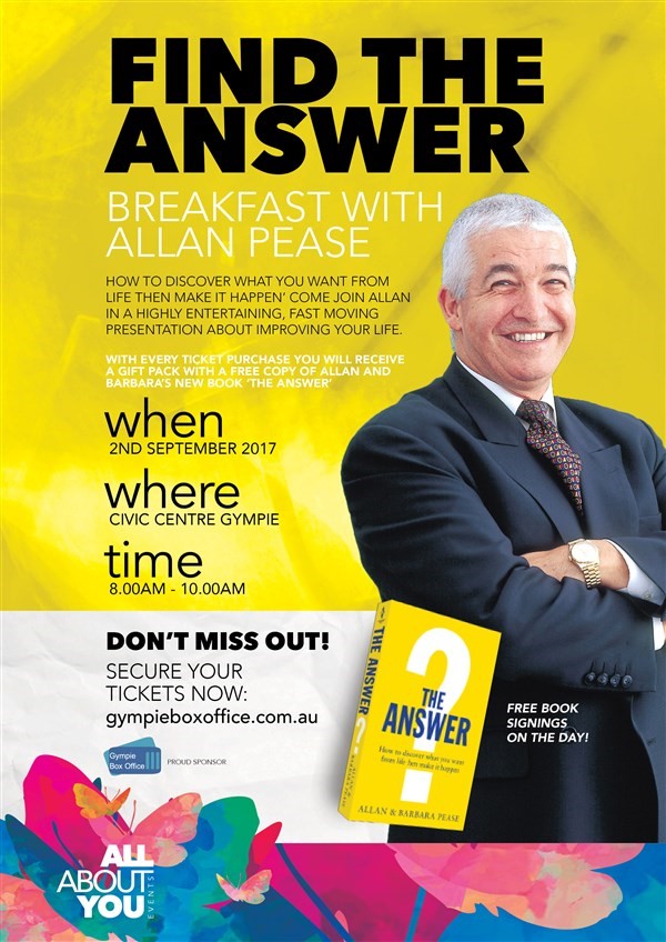 With every ticket, purchase you will receive a gift Pack with a free copy of Alan and Barbara's new book 'The Answer'.